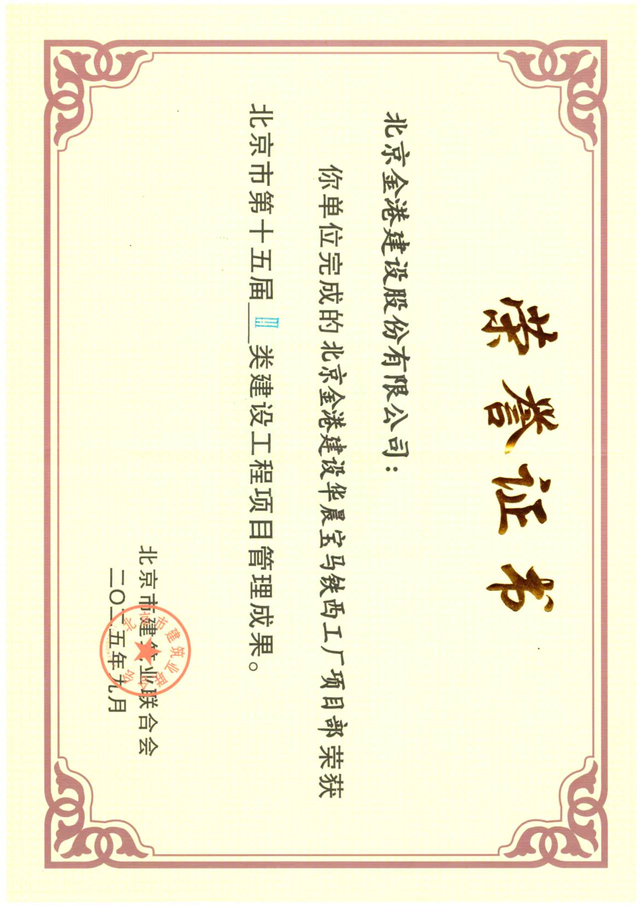 经大会评审,我公司沈阳华晨宝马项目所分享的管理成果,荣获了“北京市建设工程管理III类成果奖”。这一荣誉是对我公司在工程项目管理,特别是在技术创新与应用方面所做努力和取得成绩的充分肯定。